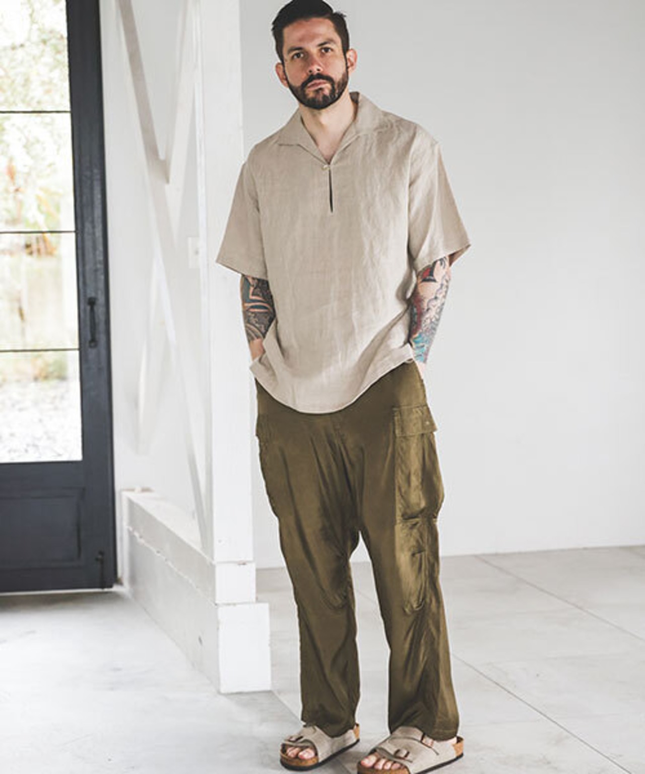 大きめなカーゴポケット、可動域のための膝のタック、腰回りの帯無し仕様など継承すべきディテールを組み込みながら、程よい太さのシルエットににアップデートしたモデル。