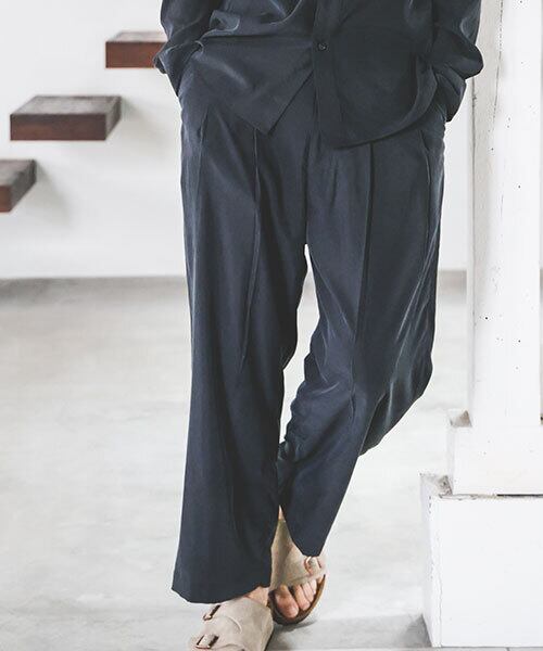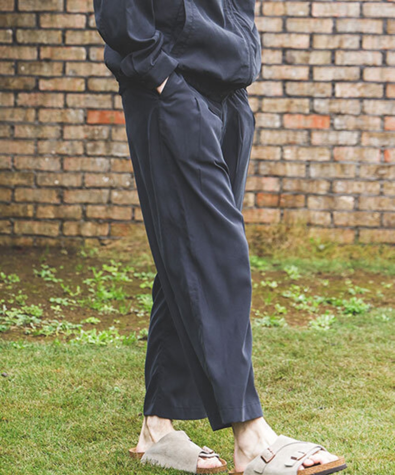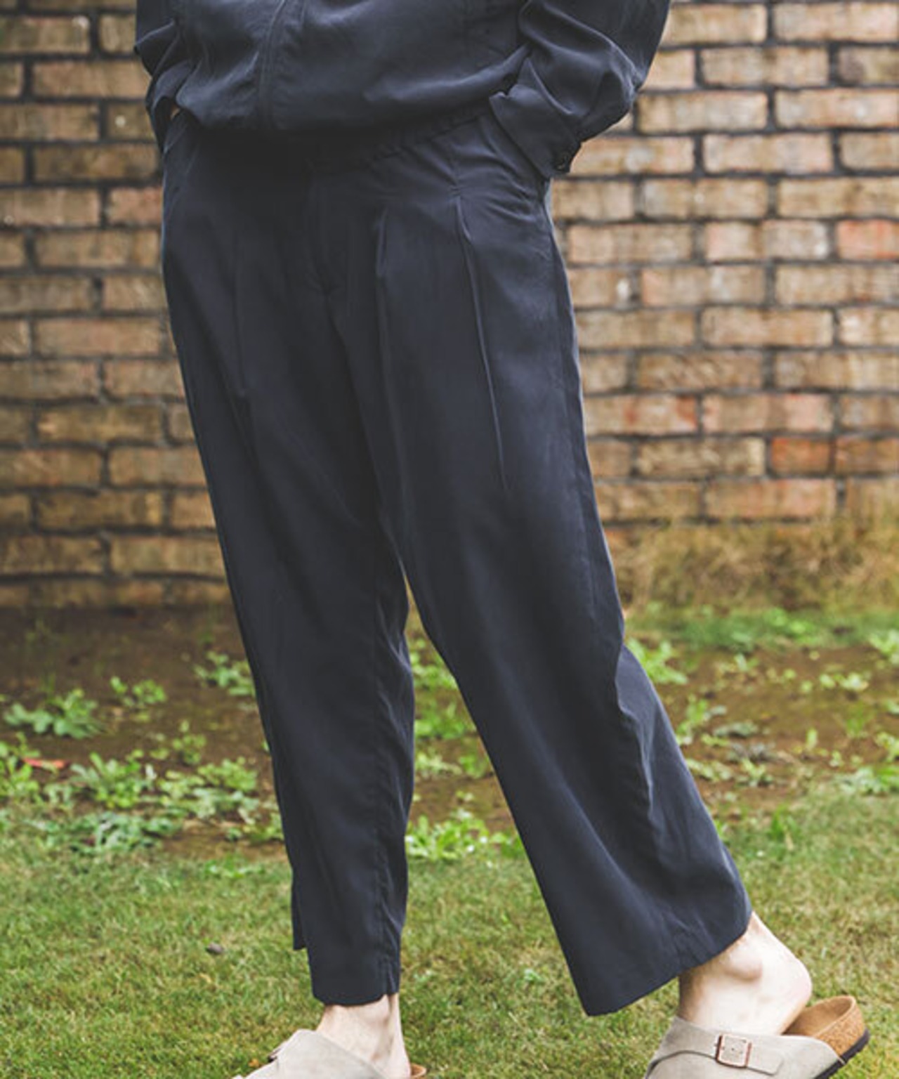 MR.OLIVE / T/R POWDER CLOTH 2TACK WIDE EASY PANTS Black