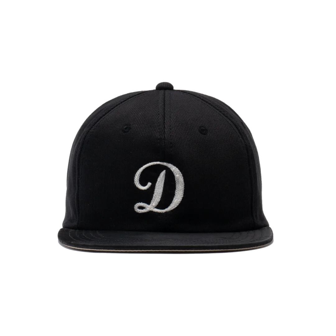ベーシックなフラットブリムに深さのあるクラウン、フロントパネルに『D』のチェーン刺繍が施されるデザインとなります。