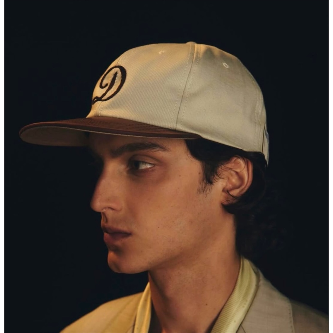 ベーシックなフラットブリムに深さのあるクラウン、フロントパネルに『D』のチェーン刺繍が施されるデザインとなります。