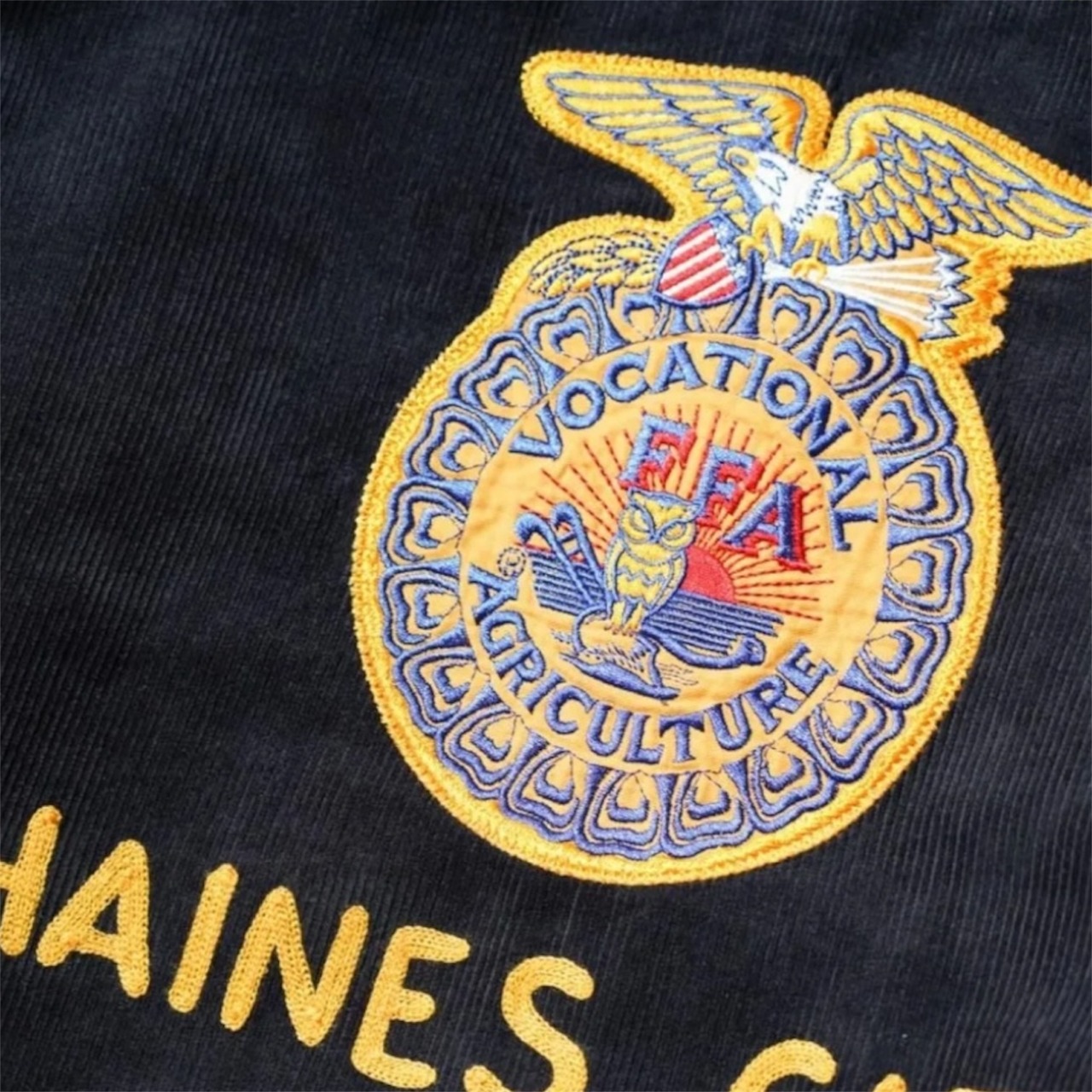 FFA(Future Farmers Agriculture)ジャケットは1928年設立、アメリカの国立農業学校のユニフォームウェアで州ごとに違う刺繍、着用者の名前が施されているジャケット。