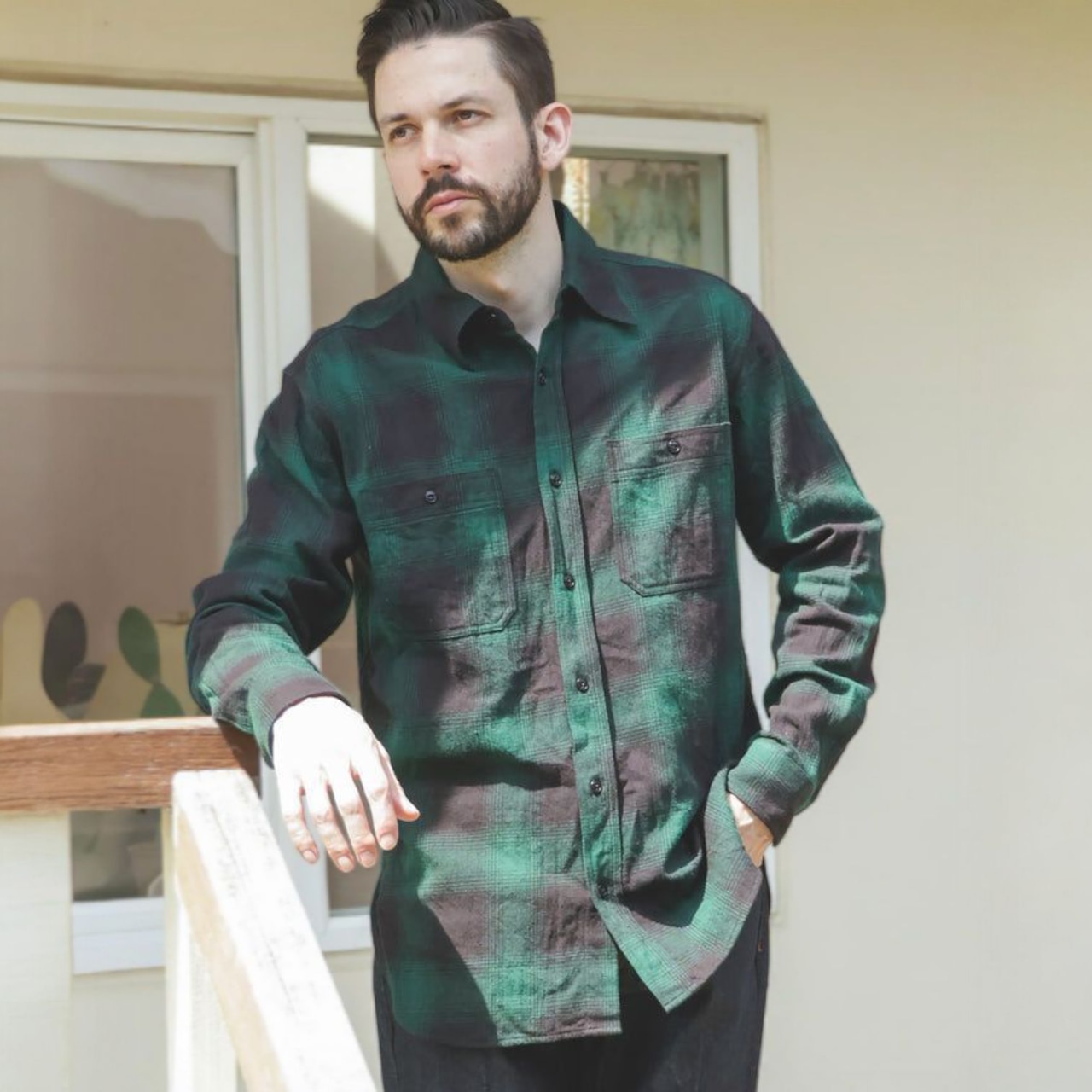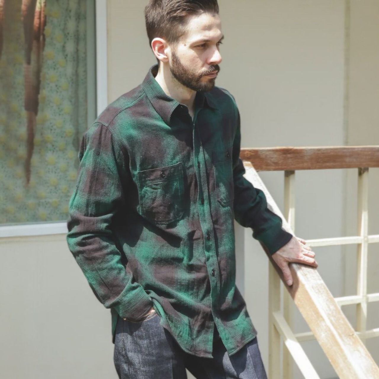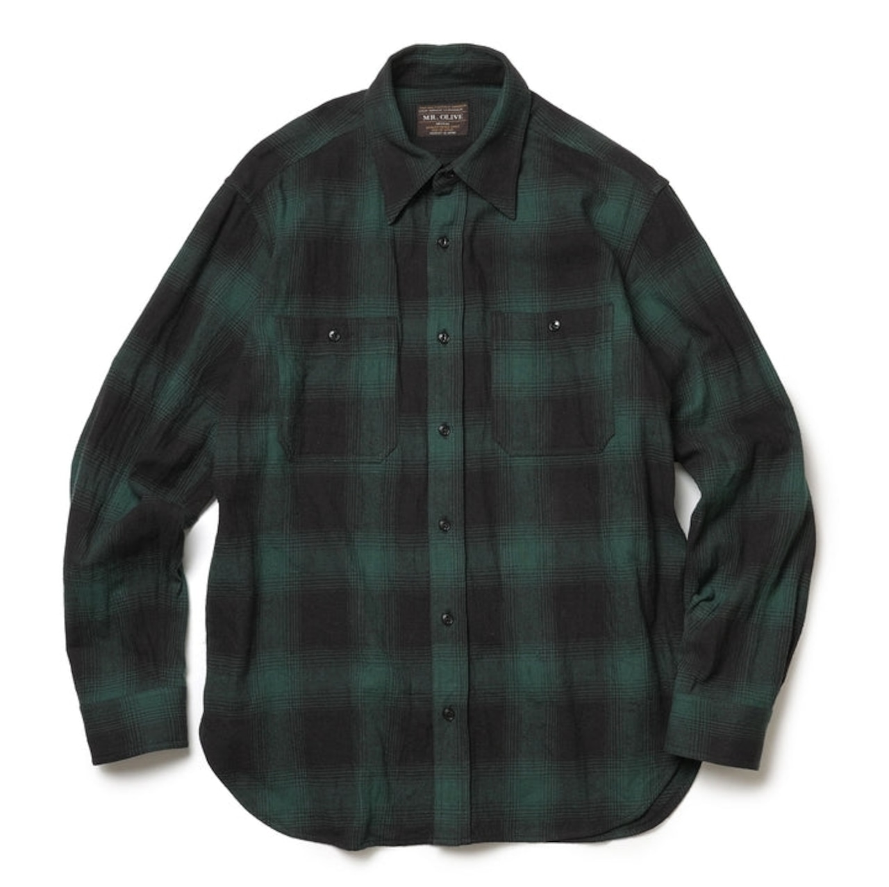 MR.OLIVE / OMBRE CHECK NEL WORK SHIRT Green