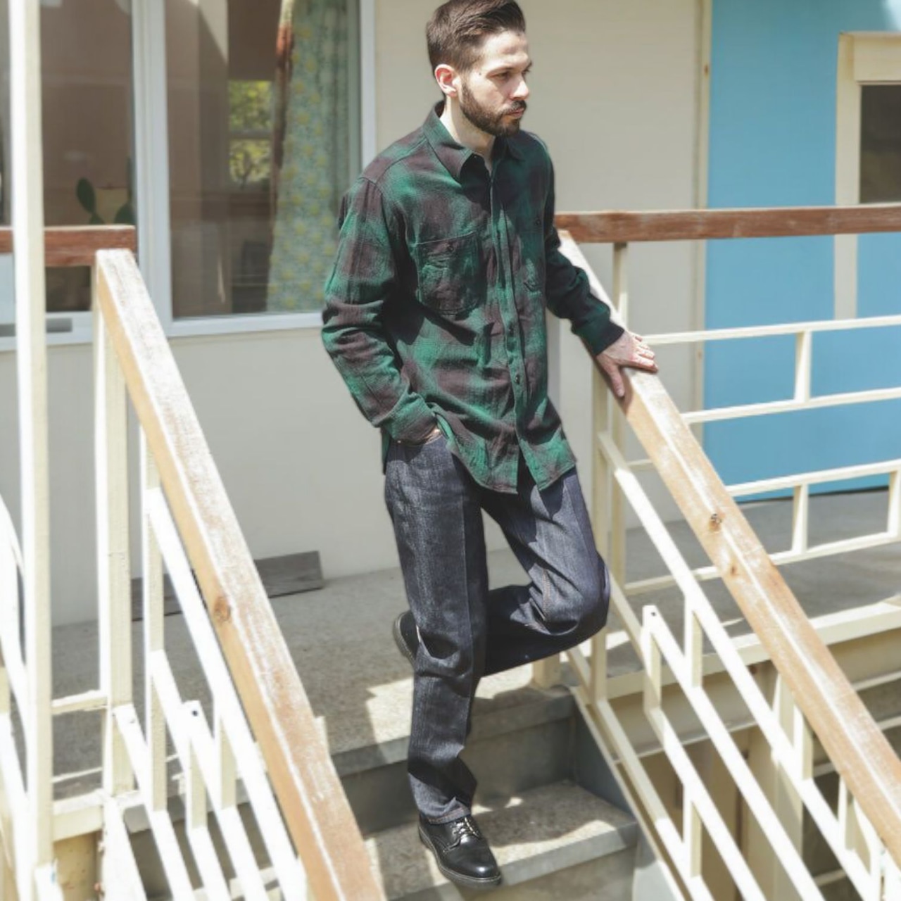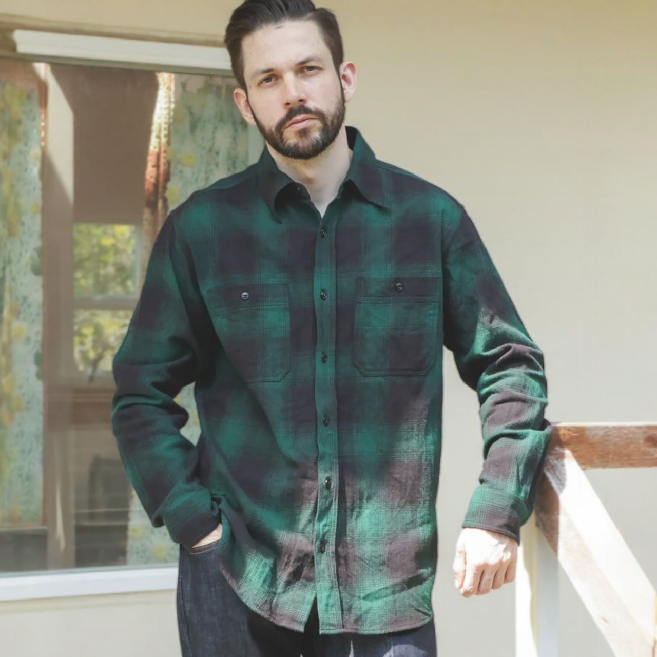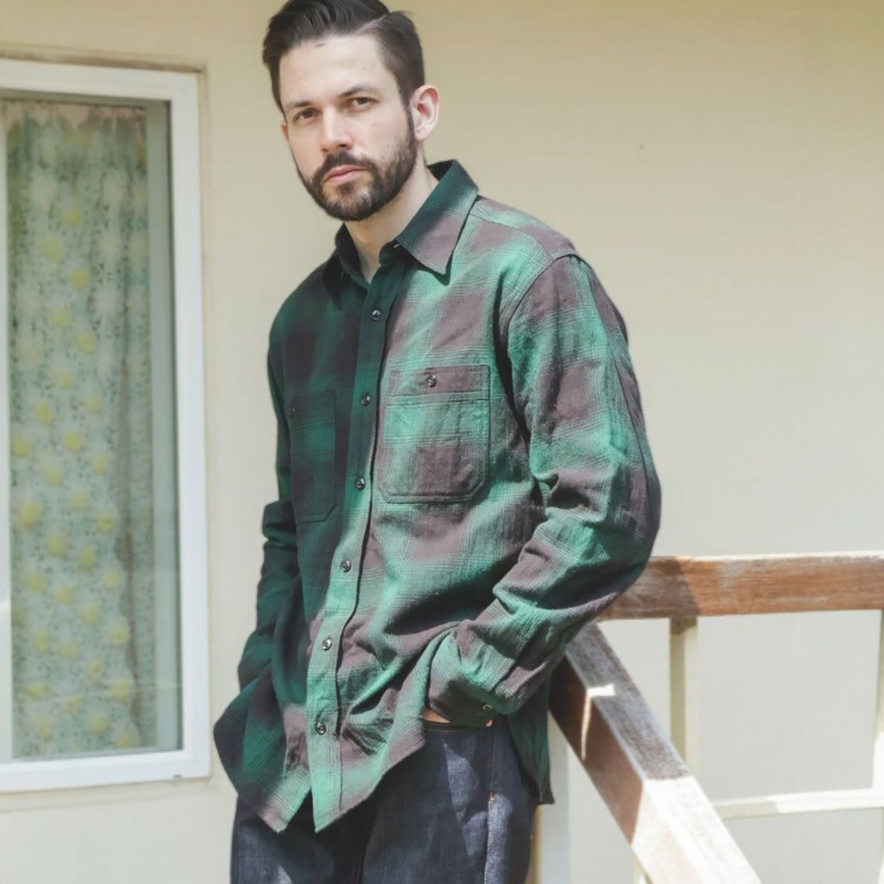 MR.OLIVE / OMBRE CHECK NEL WORK SHIRT Green