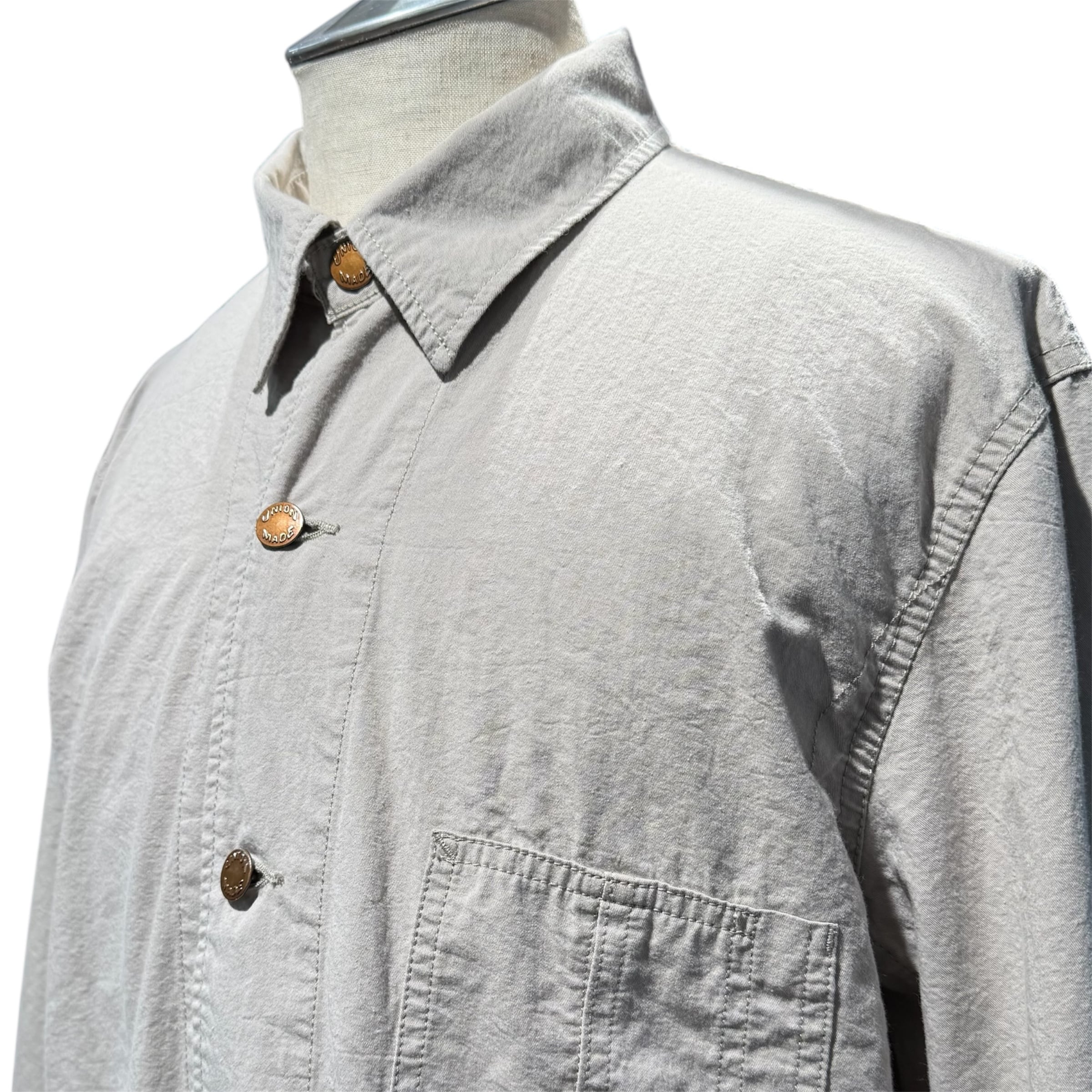 綾目の美しいツイル生地は、程よいハリと光沢感がありながらも、REMI RELIEFならではの加工によって自然な風合いに仕上げられています。ワーク由来のディテールをベースにしながら、どこか都会的な佇まいを感じさせる一着。