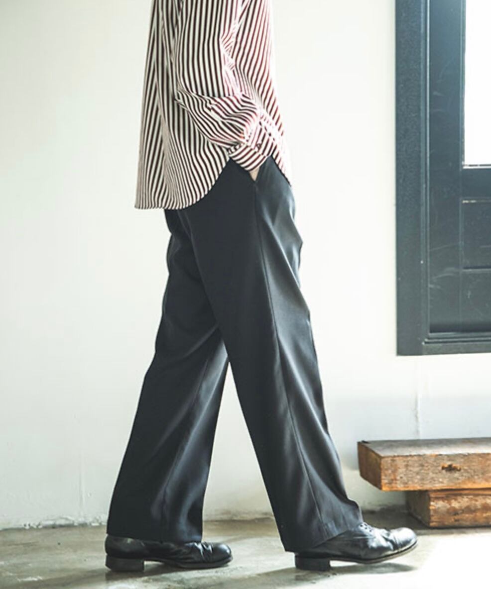 (レトロポリエステルツイル/イージースタプレストワイドパンツ)