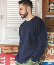 MR.OLIVE / T/C BASKET CHAIN KNIT ARM POCKET CUT&SEWN Navy